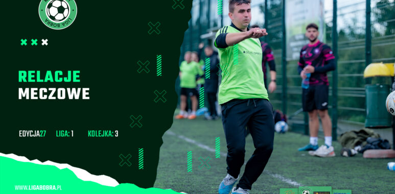 W ostatnim meczu trzeciej kolejki zmierzyły się drużyny związane z kolorem zielonym, czyli Green Team i FC Pepinos. Dla Green Team była to szansa na podtrzymanie zwycięskiej serii, z kolei Pepinos chcieli zaprezentować się lepiej niż w poprzednim meczu. W spotkanie dużo lepiej weszli gospodarze tego meczu, którzy prowadzili już 5:0. Motorem napędowym akcji ofensywnych był Piotr Bielecki, który brał udział przy wszystkich 5 bramkach, 1 strzelając i przy 4 asystując. Pepinos stać było na odpowiedź w postaci bramki Mateusza Przybysza pod koniec pierwszej połowy, przez co wynik do przerwy wskazywał 5:1. W drugą połowę lepiej weszli gracze Green Team podwyższając prowadzenie po bramkach Żulczyka i Pawłowskiego oraz bramce samobójczej. Pepinos znów odpowiedzieli bramką, jednak końcówka spotkania była rozgrywana pod dyktando gospodarzy. Drużyna Green Team w ciągu ostatnich 10 minut strzeliła przeciwnikom 5 bramek ustalając wynik spotkania 13:2. Najlepszym zawodnikiem meczu został Piotr Bielecki, który zakończył mecz z 2 bramkami i aż 7 asystami na koncie.